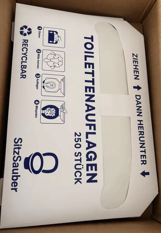 Unsere Auflagen bestehen aus ultradünnem, wasserlöslichem Papier. Sie sind plastikfrei, recycelbar und spülbar – entwickelt für den hygienischen und sicheren Einsatz in öffentlichen Toiletten.
